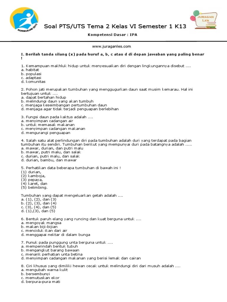 Berikut ini adalah contoh latihan soal uts ipa kelas 6 semester 2. Top pdf soal latihan dan kunci jawaban ulangan umum ipa kelas 6 atau vi semester ganjil dikompilasi oleh 123dok.com. Download dan dapatkan soal latihan uts genap ipa kelas 5 semester 2 ktsp terbaru 2016. Tumbuhan tersebut berkembang biak melalui cara. Tengah semester / pts atau ulangan tengah semester / uts. Kunci jawaban ulangan harian ipa tema 1 kelas 5 . Latihan soal ulangan tematik sd kelas 6 semester 1 2 tema 12345678. Buku bank soal ulangan sd kelas 6 semester 2 kurikulum 2013 revisi. Esps ipa sd mi kelas 1 2 3 6 kurikulum 2013 erlangga revisi. Soal uts ipa ini sudah dilengkapi dengan kunci jawaban. Nah jangan kawatir kakak telah menyediakan soal tersebut untuk adik adik, soal ini kakak susun dari semester ganjil hingga semester genap yang mana bisa adik . Buku pelajaran sd buku ipa sd best score 100 bank soal kelas 4 5 6. Kunci jawaban dan soal ujian uas untuk materi ipa kelas 6 pada semester 1.
